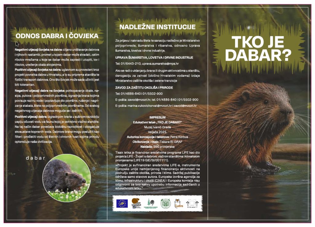 Muzej Ivanić-Grada so pripravili letak, ki vsebuje pomembne osnovne informacije o bobru in Life projektu.